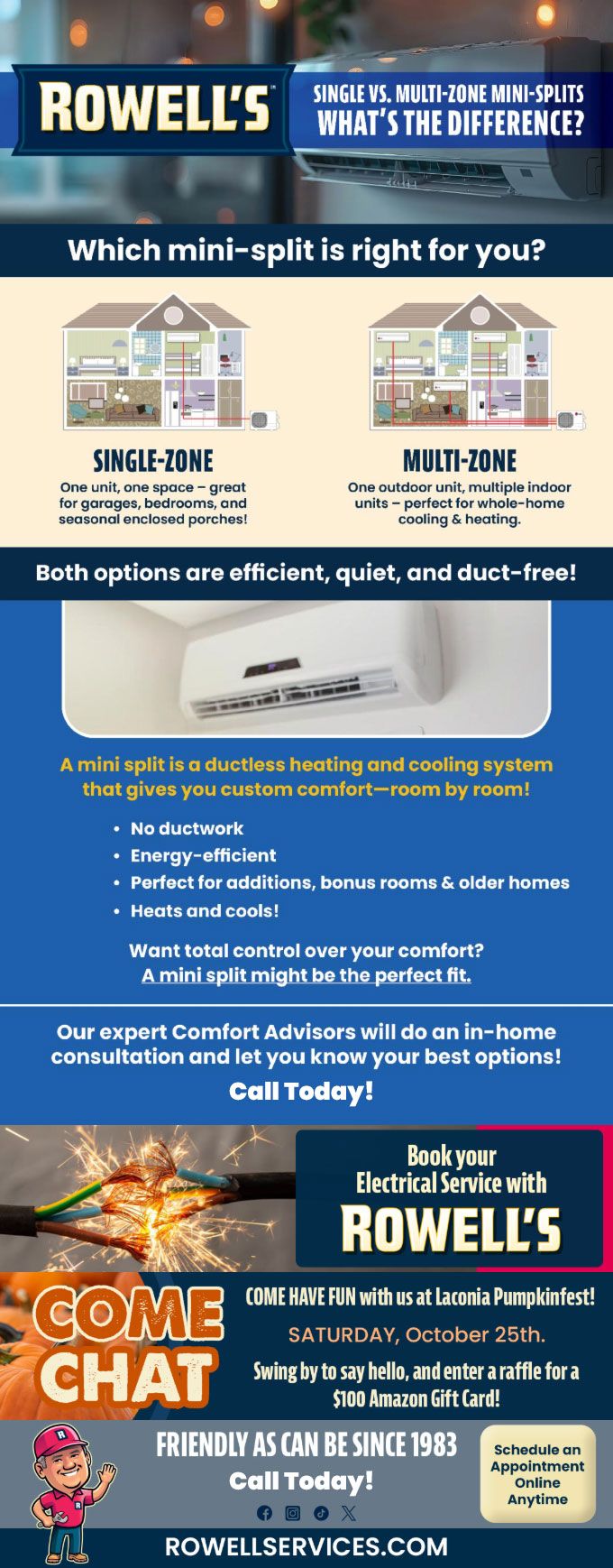 "Friendly As Can Be Since 1983!" When you need help with your plumbing, drains, heating, cooling or electrical in Londonderry, you can always rely on Rowell's Services! Call us now or book online!